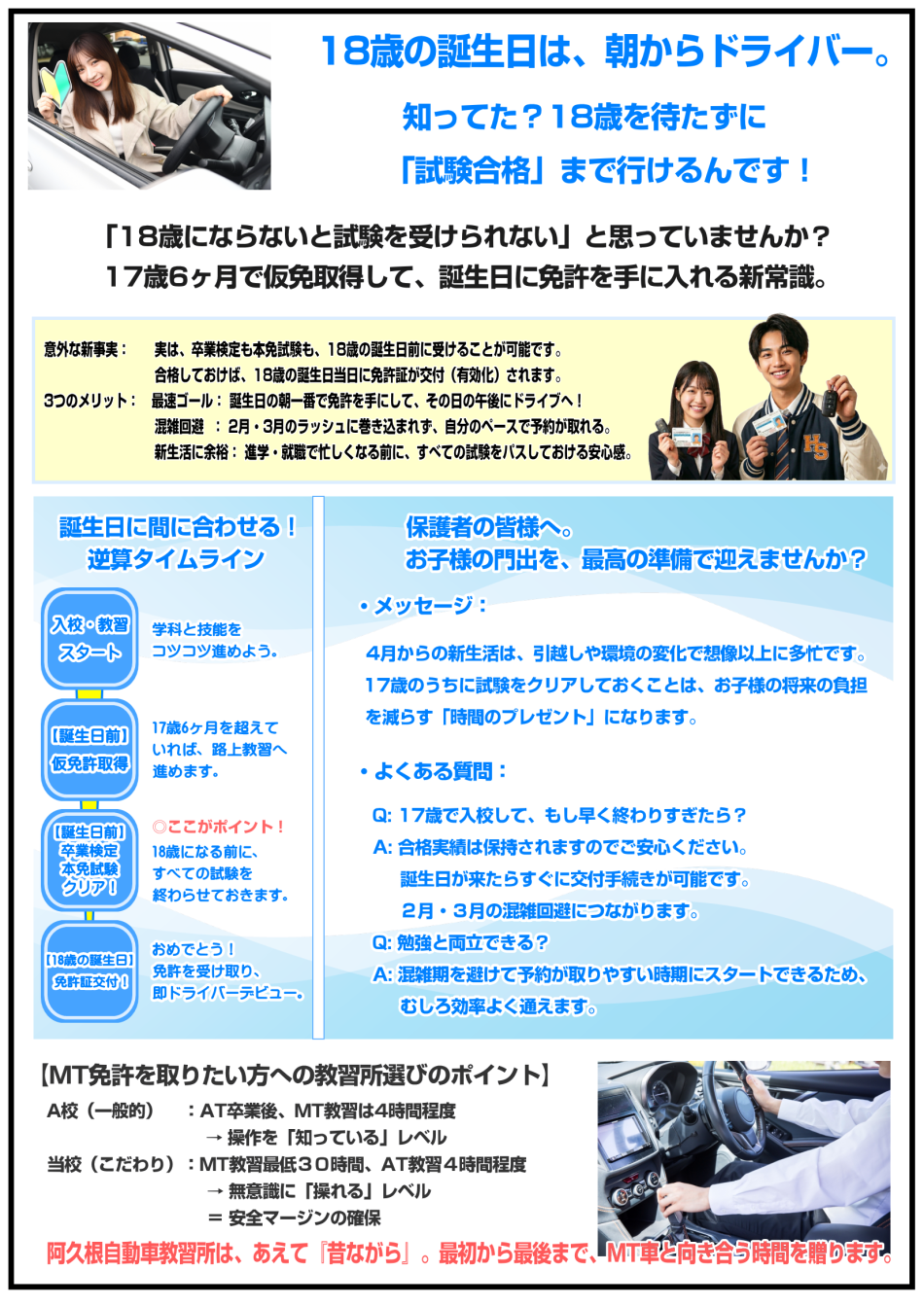 ようこそ、阿久根自動車教習所ホームページへ。当校は【楽しくなければ車校じゃない!】をスローガンに、地域の交通安全に貢献いたします。